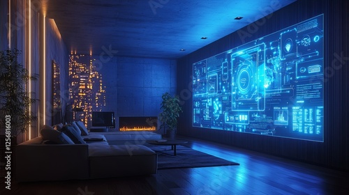 living, room, technology, modern, interior, design, blue, light, futuristic, couch, plant, wall, display, datum, screen, decor, architecture, relaxation, urban, digital, art, visualisation, ambience, luxurious, home, atmosphere, innovation, style, comfort, sophisticated, cosy, interactive, space, smart, entertainment, information, illumination, projection, ambient, minimalist, contemporary, simulation, aesthetic, network, dashboard, concept, virtual, reality