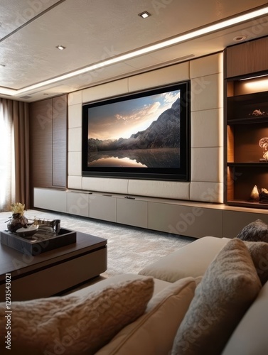 Modern living room with large television and elegant interior design