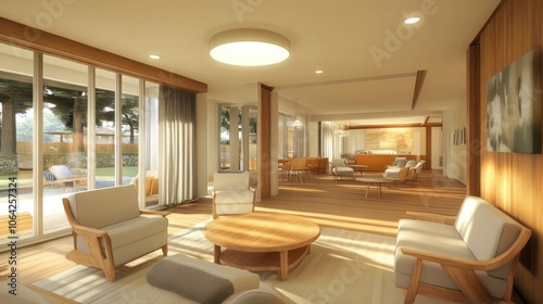 living, room, house, interior, home, modern, design, furniture, architecture, decor, style, couch, chair, table, wood, window, glasses, patio, luxury, comfortable, roomy, bright, light, natural, minimalist, contemporary, elegant, clean, line, warm, sun, sunlight, flooring, cushion, artwork, wall, painting, lounge, relaxation, calmness, open, airy, sofa, hot drink, floor, lamp, side, indoor