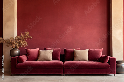 sofa, furniture, interior, couch, room, home, comfortable, design, leather, three-dimensional, seat, relax, wall, cushion, comfort, pillow, chair, decor, red, living, floor, style, decoration, to sit, contemporary