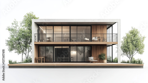 modern, house, balcony, white background, architecture, contemporary, minimalist, exterior, design, residential, building, glasses, facades, tree, landscaping, patio, deck, railing, wood, metal, urban, stylish, elegant, roomy, natural light, greenery