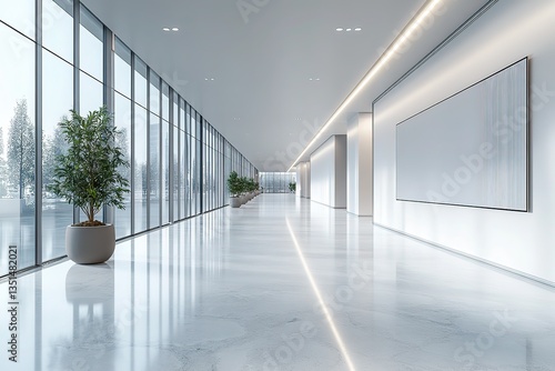 hallway, interior, glasses, window, plant, potted, floor, polished, light, architecture, office, building, bright, indoor, decoration, sleek, corridor, nobody, rendering, wall, blank, display, frame, luxury, marble, showroom