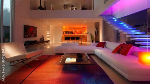 luxury home, home interior, living room, furniture, architecture, elegant, design, modern, interior, house, real estate, stair, lighting, stylish, upscale, lifestyle, living space, indoor, home decor, red, blue, orange, futuristic, residence, property, comfortable, luxury, home, space, interior design, architectural