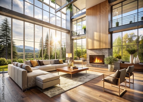 interior design, fireplace, home decor, modern architecture, natural light, luxury house