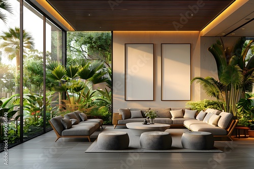 modern, luxury, living room, natural light, elegant, furniture, contemporary, design, window, greenery, decor, relaxation, social, sophisticated, roomy, stylish, interior, tropical, serene, peaceful, chic, minimalist, bright, airy, plant, vegetation, comfort, harmony, inviting, aesthetic, tranquil, fashionable, high-end, sunlit, architectural, refreshing, open space, nature, cosy, urban
