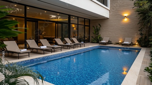 Modern Luxury Poolside Relaxation with Loungers and Towels