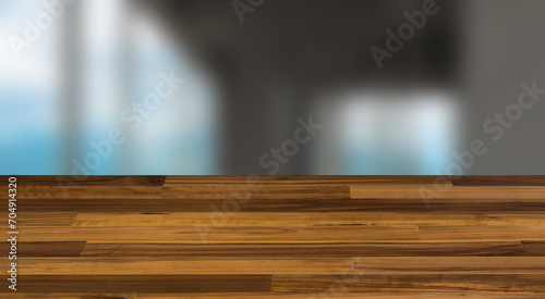 Modern meeting room. 3D rendering., Background with empty wooden table. Flooring.