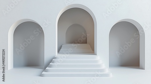 arch, architecture, minimal, modern, white, stair, recess, design, interior, background, clean, elegant, symmetric, aesthetic, monochromatic, smooth, serene, depth, composition, lighting, product, display, marketing, real estate, interior design, business, commercial, template, abstract, simple, style, image, photo, visual, mood, concept, promotion, advertising, illustration