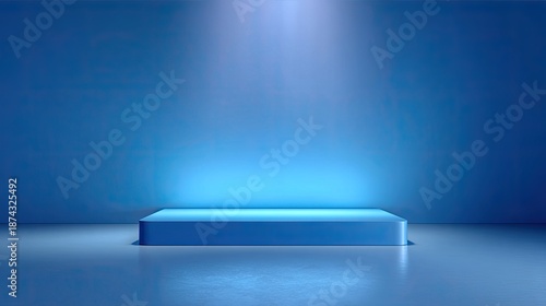 Modern Minimalist Blue Stage with Soft Lighting for Presentations or Product Displays in Creative Visual Spaces