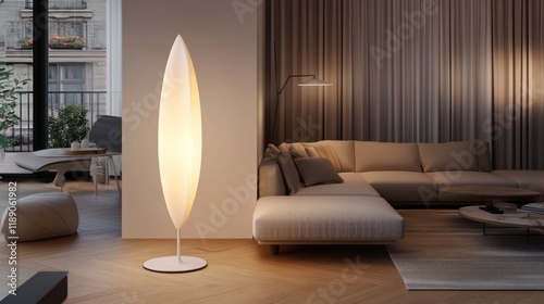 lamp, floor, light, living, room, modern, minimalist, interior, design, home, decor, style, apartment, house, furniture, sofa, beige, white, illumination, lighting, night, evening, warm, cosy, ambience, elegant, sleek, contemporary, space, comfort, relaxation, calm, serene, bright, soft, subtile, tall, slender, shape, racked, footed, luxury, artistic, aesthetic