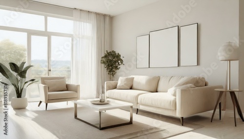 Modern Minimalist Living Room: Clean and Contemporary Design with Beige-White Sofa in Daylight