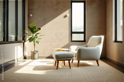 Modern Minimalist Living Room Interior with Natural Light and Green Plant