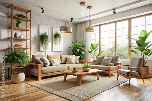 Modern Minimalist Living Room Sunlight Interior Design Stock Photo