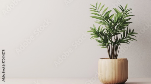 Modern Minimalist Plant Interior Design with Wooden Planter in Bright Natural Light