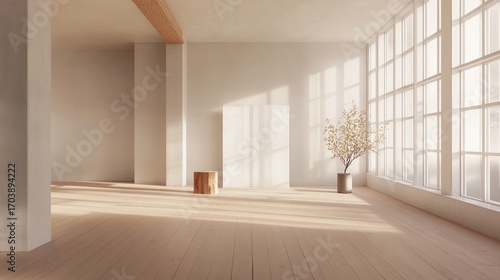 room, interior, minimalist, modern, design, sunlight, sun, window, light, wooden, floor, wall, plant, white, beige, empty, space, home, apartment, house, style, decor, calm, serene, peaceful, clean, simple, bright, airy, roomy, natural, wood, architecture, background, texture, aesthetic, living, cosy, tranquil, relaxing, contemporary, elegant