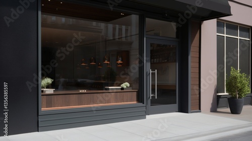 Modern Minimalist Storefront with Dark Exterior and Large Windows