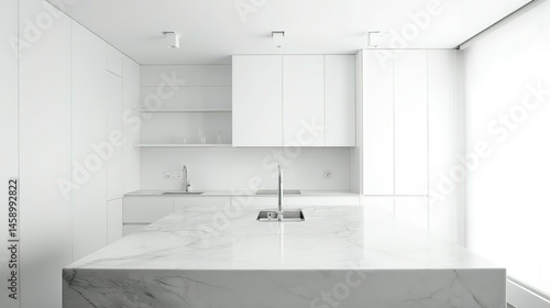 kitchen, modern, minimalist, white, interior, design, marble, countertop, cabinet, lighting, clean, simple, space, contemporary, functional, architecture, light, bright, decor, apartment, home, style, neutral, empty