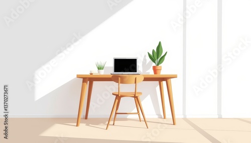 workspace, minimalist, desk, laptop, plant, clean, modern, light, design, calmness, home office, natural light, geometric, empty, simplicity, decor, furniture, arrangement, aesthetic, bright, cosy, calm, productivity, organisation, interior, white, indoor, potted plants, sharpened, atmosphere, creative, motivation, contemporary, 1, chair, wood, color palette, scandinavian, open space, elegance, functionality, harmony, relaxation, inspiration, daylight, planning