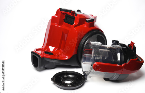 Modern modular vacuum cleaner with parts on a white background