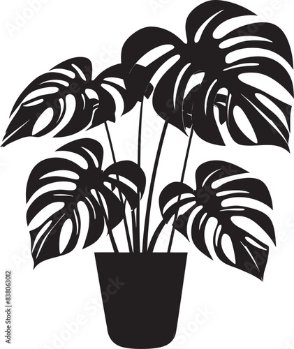 Modern Monstera Leaf Emblem Graphic Design Elegant Plant Pot Icon Minimalistic Emblem