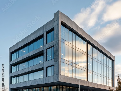 Modern office building with reflective glass showcasing minimalist architecture in a vibrant urban setting during daylight hours