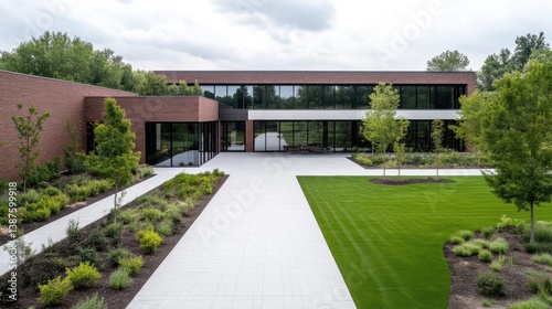 office, building, modern, complex, courtyard, landscaping, brick, glasses, patio, lawn, tree, plant, shrub, paseo, paved, design, architecture, commercial, property, exterior, contemporary, roomy, open, green, business, professional, corporate, campus, sustainable, maintenance, construction, investment, development, luxury, elegant, impressive, fresh, city landscape, urban, suburban, residential, business building