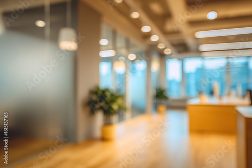 Modern Office Lobby Interior with Blurred Background and Warm Lighting
