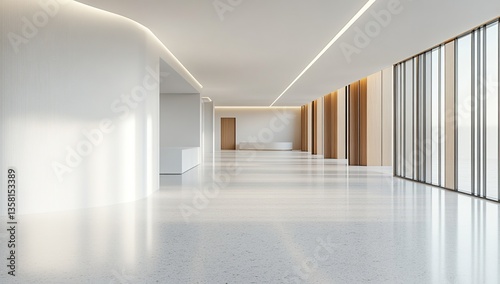 modern, interior, office, lobby, architecture, design, building, space, hallway, corridor, contemporary, minimalist, white, wood, floor, marble, wall, window, light, bright, clean, empty, large, open, long, perspective, elegant, luxurious, commercial, real estate, property, business, corporate, modern architecture, office space, interior design, empty space