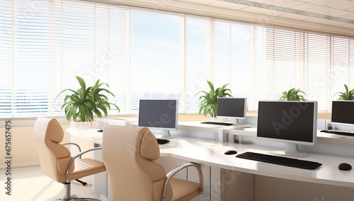 office, modern, computer, plant, desk, chair, window, blind, keyboard, monitor, workplace, design, desktop, work, screen, table, business, interior, white, technology, workspace, day, no people, indoor