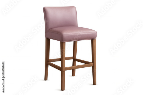 Modern pink bar stool with wooden legs isolated on transparent background, perfect for interior design projects