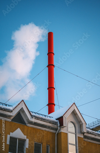 chimney, sky, factory, industry, pollution, blue, smoke, industrial, pipe, power, tower, energy, smokestack, building, architecture, brick, environment, old, air, stack, lighthouse, plant, technology, construction