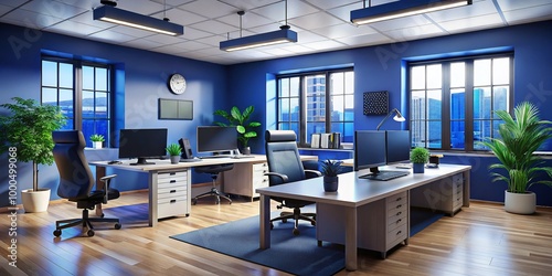 Modern Police Office Interior with Desks, Computers, and Equipment for Law Enforcement Activities