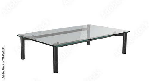 Modern rectangular glass coffee table with sleek chrome legs isolated on transparent background