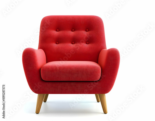 Modern Red Armchair Isolated on a White Background Featuring a Cozy Frontal View for Contemporary Interior Design Use