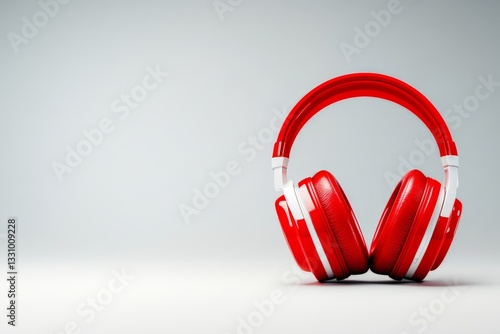 Modern red headphones with sleek design placed on a neutral background for high quality audio experience and contemporary music technology concept