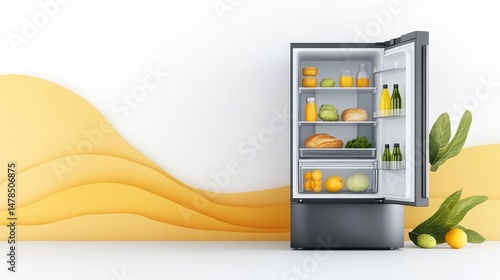 Modern Refrigerator Interior with Fresh Groceries and Minimalist Design
