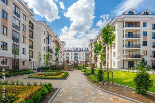 apartment, residential, complex, modern, building, architecture, housing, garden, pathway, exterior, real estate, community, urban, neighbourhood, development, landscaping, home, property, contemporary, living, city, sky, luxury, greenery, tree, lifestyle, estate, environment, urban living, family, residential area, courtyard, suburban, stylish, clean, peaceful