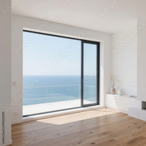 ocean view, sea, horizon, hardwood floor, natural light, window, interior, room, home, house, view, architecture, sky, wall, empty, open, glasses, frame, floor, nobody, apartment, indoor, new, wooden, design, door, light, parquet, space, nature