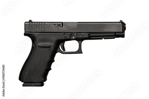 Modern semi-automatic pistol isolate on a white background. Armament for the army and police. Short-barreled weapon