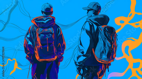 modern, set, retro, bright, blue, banner, aesthetic, wireframe, figure, ornament, style, illustration