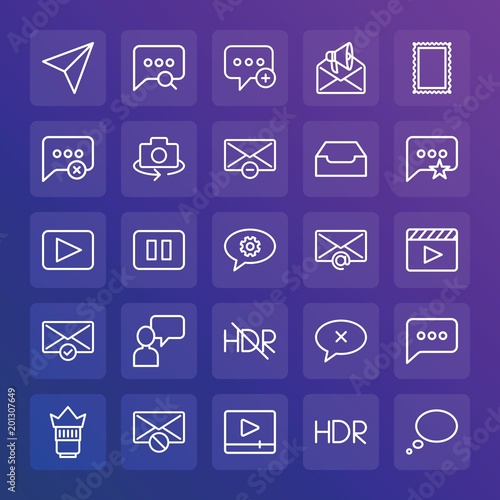 Modern Simple Set of chat and messenger, video, photos, email Vector outline Icons. ..Contains such Icons as mobile, talk, new, lens and more on gradient background. Fully Editable. Pixel Perfect.