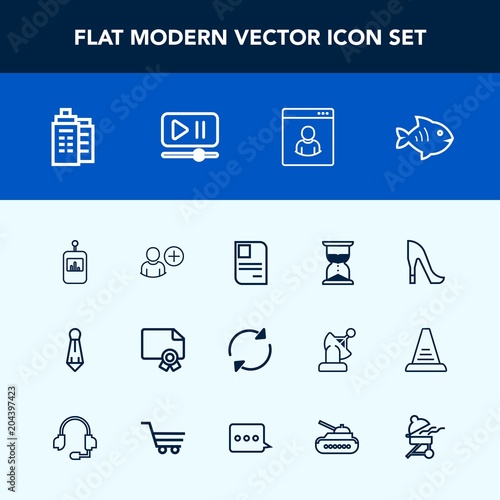 Modern, simple vector icon set with business, fashion, female, male, real, high, identity, card, reload, video, award, diploma, seafood, frame, time, sea, sign, button, id, hourglass, white, add icons