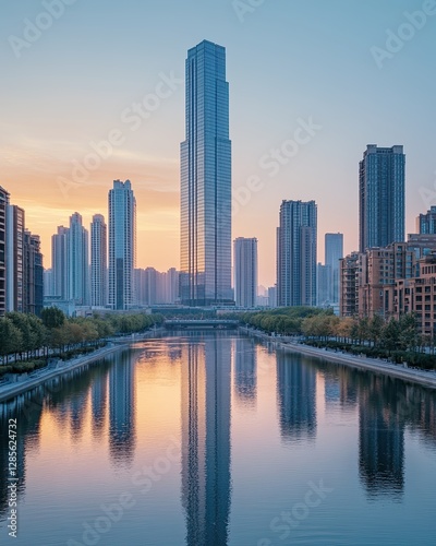 skyscraper, water, city, modern, reflect, calm, urban, architecture, sunset, build, coastal, river, nature, symmetry, scenery, city landscape, mirror, tower, horizon, holiday maker, rental, bustle, landmark, design