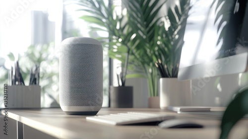 Modern Smart Speaker on Desk with Plants