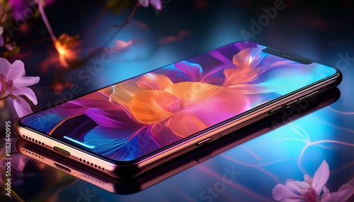 modern smartphone with glowing screen in vibrant colors showcasing digital technology and design