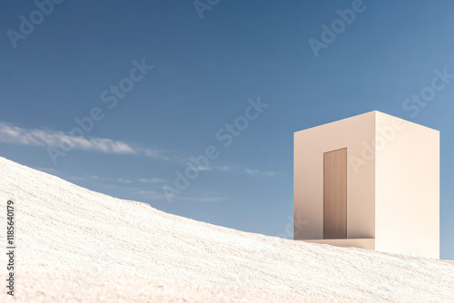 structure, architecture, minimalist, building, desert, landscape, white, sand, contemporary, design, clear, sky, wooden, door, solitude, nature, modern, geometric, sunny, outdoors, light, symmetry, environment, calmness, space, creative, isolation, shadow, line, simplicity, horizon, art, warm, colours, refreshing, minimalism, bright, architectural, beauty, angle, serenity, peaceful, attractive, aesthetic, dune, innovative, luxury