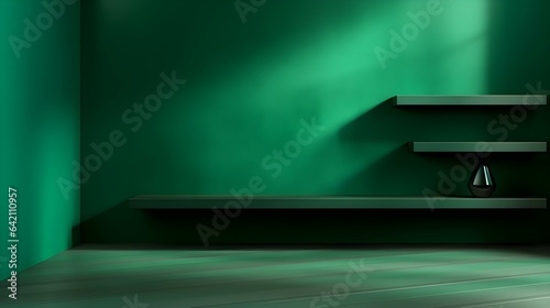 Modern Studio Background in emerald Colors. Elegant Room for Product Presentation