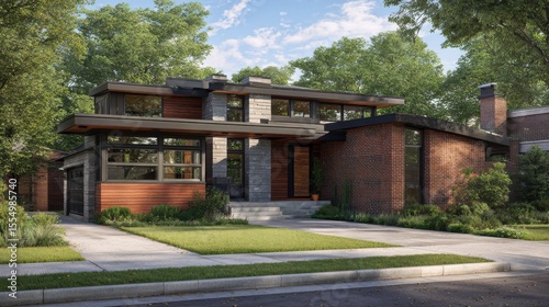 Modern Suburban Home With Sharp Architectural Details in Illinois. Generative AI.