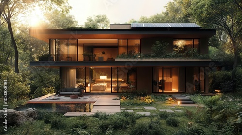 greenery, energy efficiency, environmentally friendly, architecture, residential, home, landscape, exterior, contemporary, environment, nature, solar panel, innovation, vibrant, warmth, comfort, lifestyle, house, living space, neighbourhood, harmony, modernity