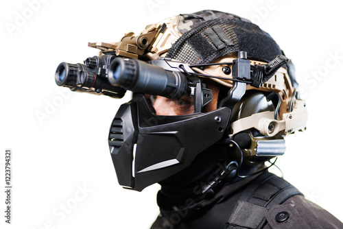 Modern Tactical Helmet Equipped with High-Tech Night Vision and Advanced Protection Gear